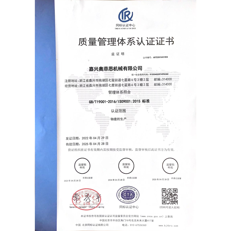 嘉興奧菲思機械有限公司成立于2014年4月,坐落于嘉興市七星鎮(zhèn),是一家專業(yè)生產(chǎn)和銷售各類自潤滑軸承系列的制造型企業(yè)。